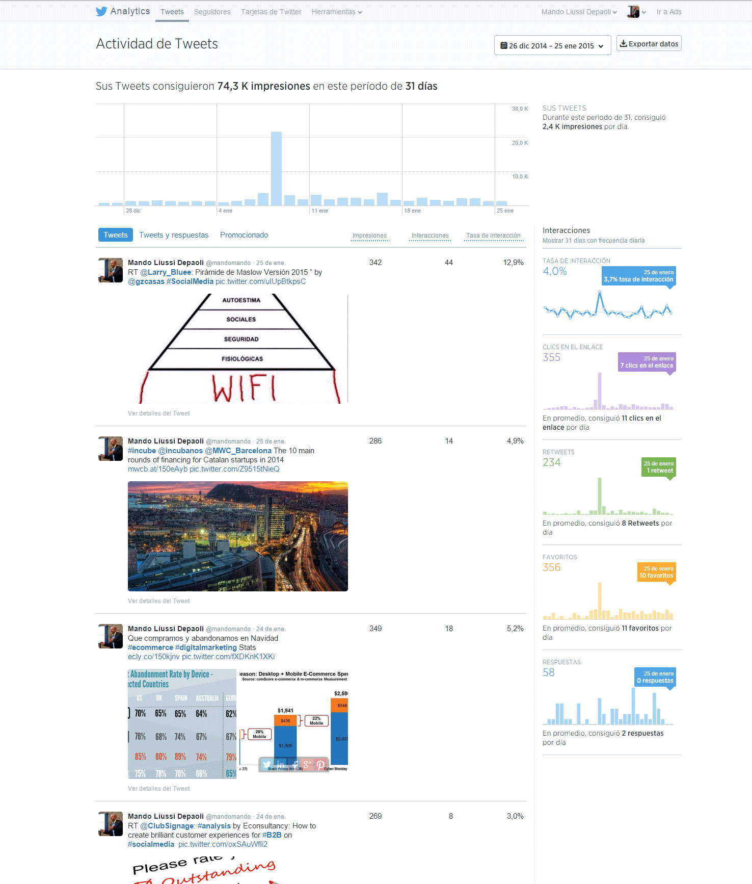 - el último tweet con vídeo tiene la mas alta cantidad de interacciones