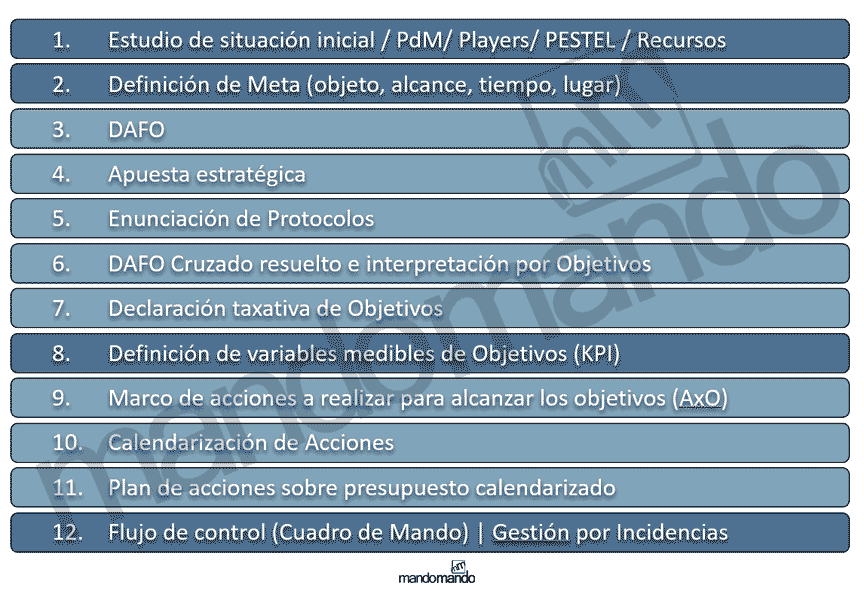 Es el resumen de una metodología de análisis, interpretación de objetivos y plan de acciones que vengo dando en escuelas de negocio, universidades y centros de formación digital en la última década (Deusto, Inesdi DBS, UVic, Ue AB, CEF -Udima, Barcelona Activa, UIC), basado en un precedente Plan Mayor (P12E) de 12 etapas.